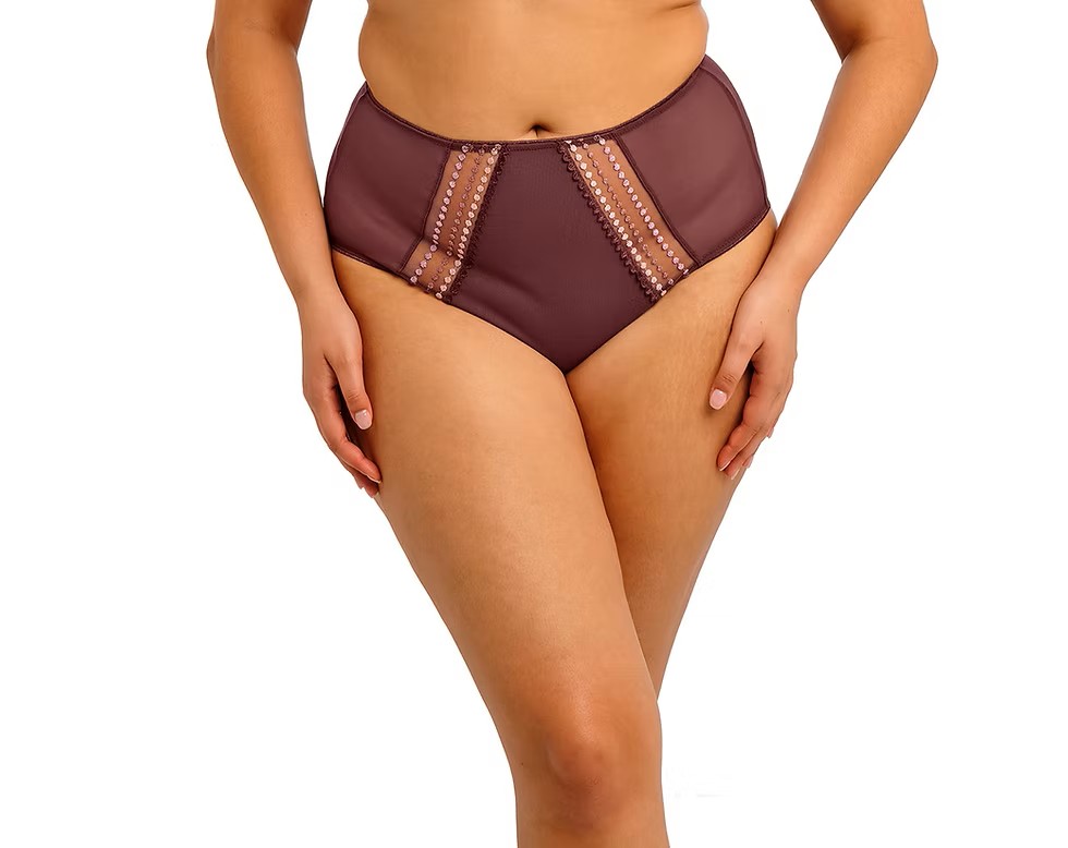 Elomi Matilda Brief hits below the navel and has a sexy sheer back. The embroidery detail matches the Matilda bra. Cotton lined gusset, double panel on front.